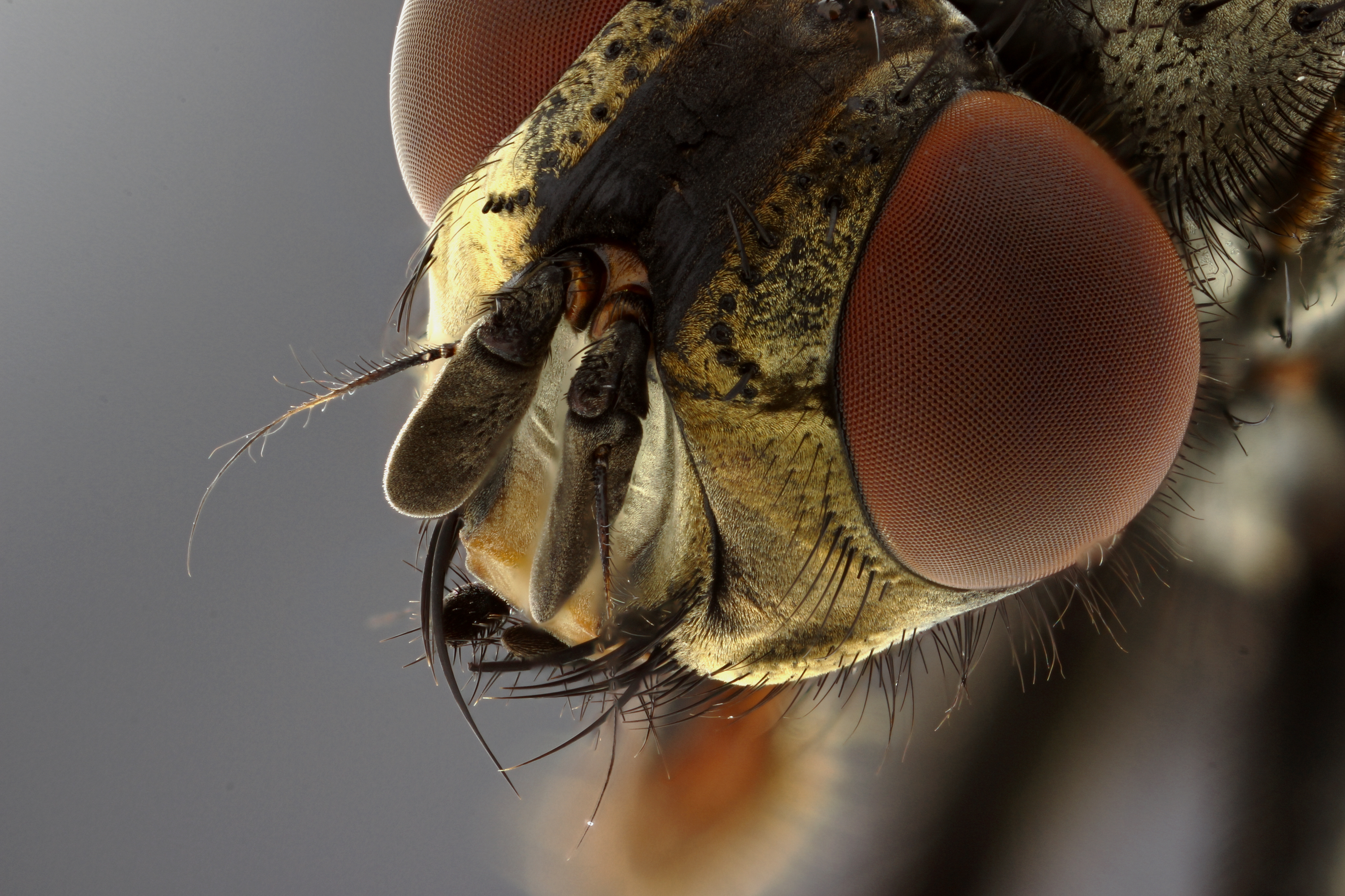 Calliphora sp. Head close-up