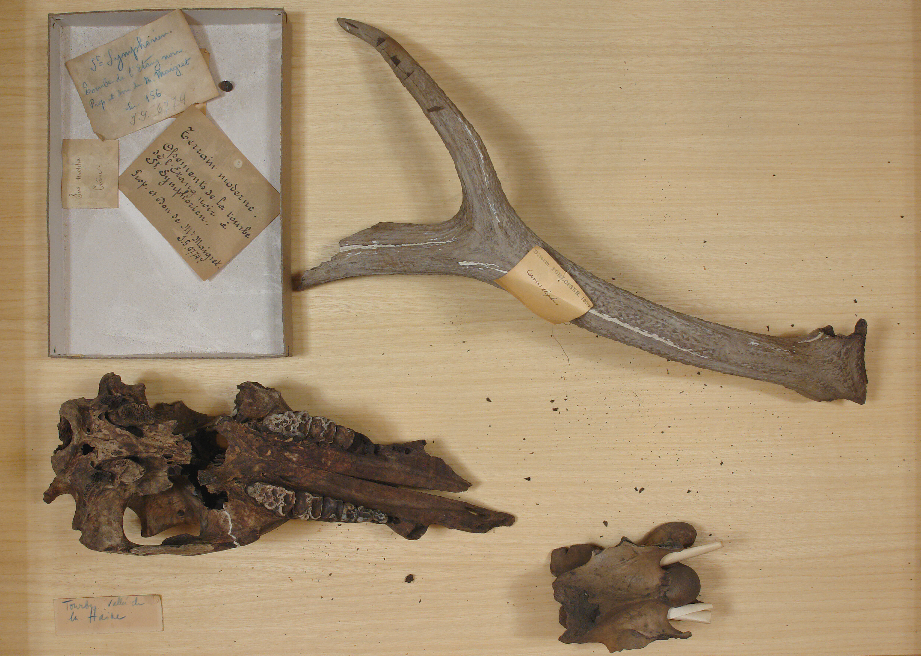 Vallée de la Haine Bois de cerf travaillés - Equus Caballus: 1 pce, - Cervus elaphus: 1 pce, - Crâne: 1 pce.