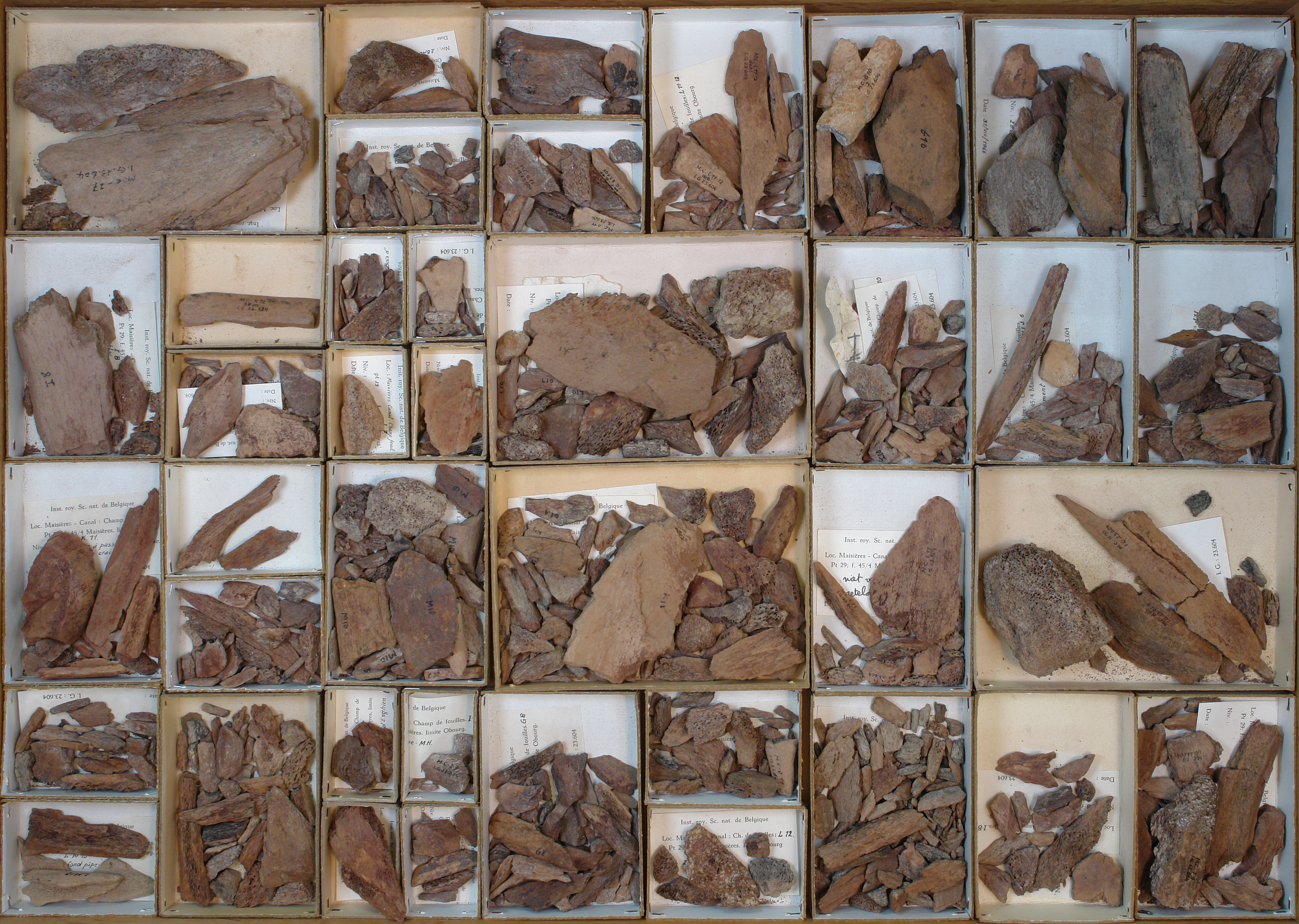 Champ de fouilles - fragments d'ossements indéterminés: 40 cuvettes.