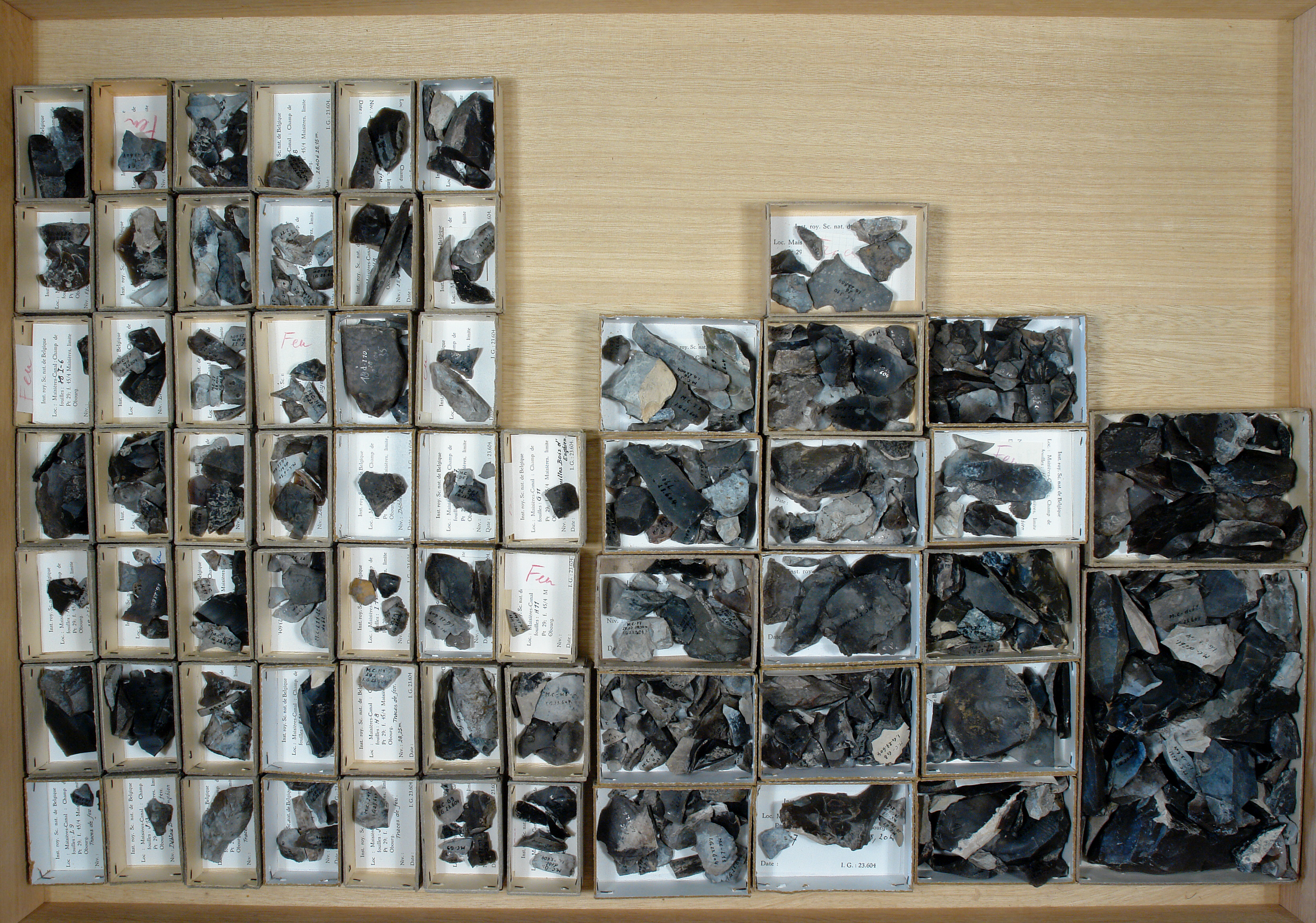 Champ de fouilles, Feu - silex avec trace de feu: 64 cuvettes.