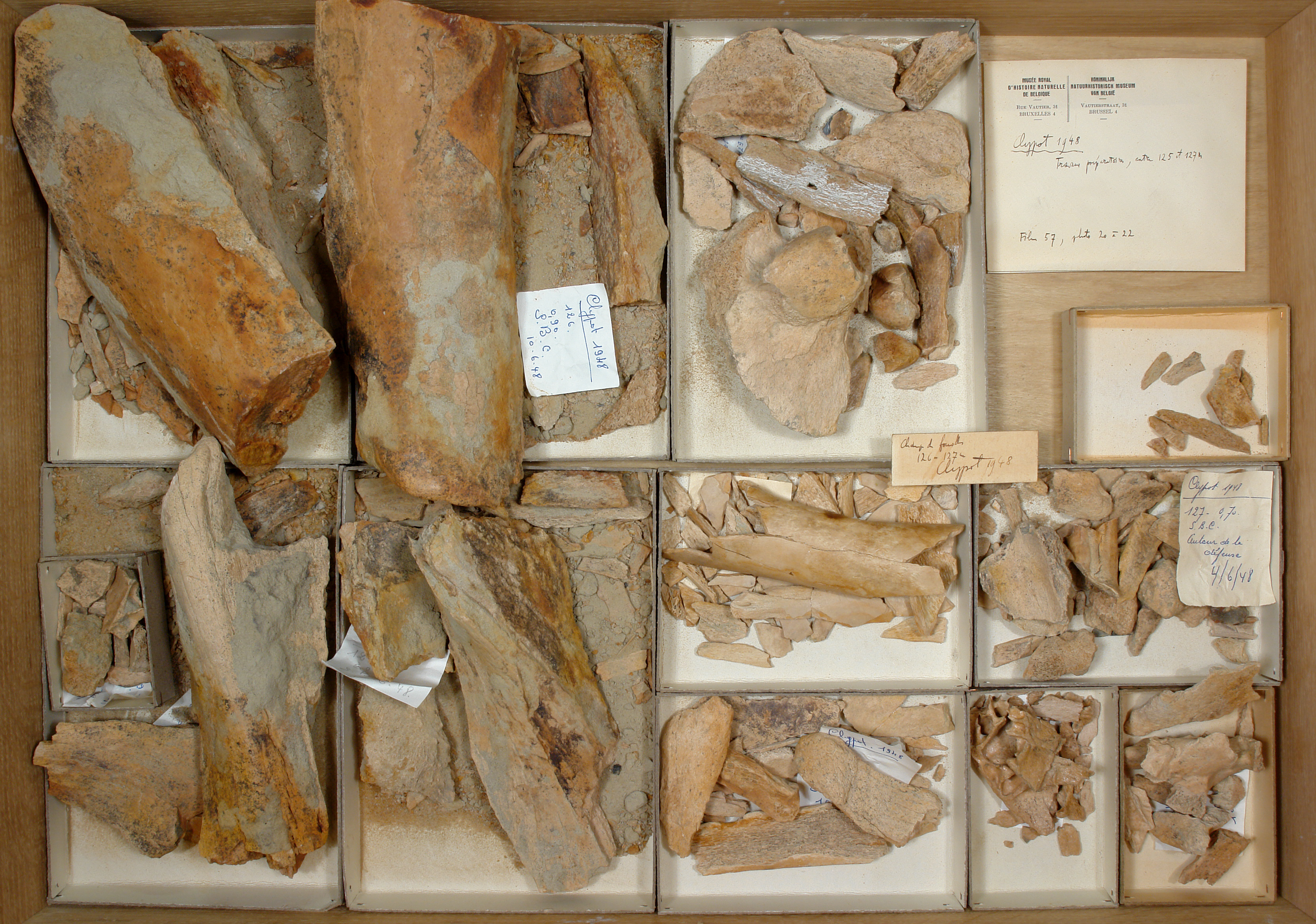 Champ de fouilles 126-127 - enveloppes + photos: 2 pcs, - ossements: 12 cuvettes.