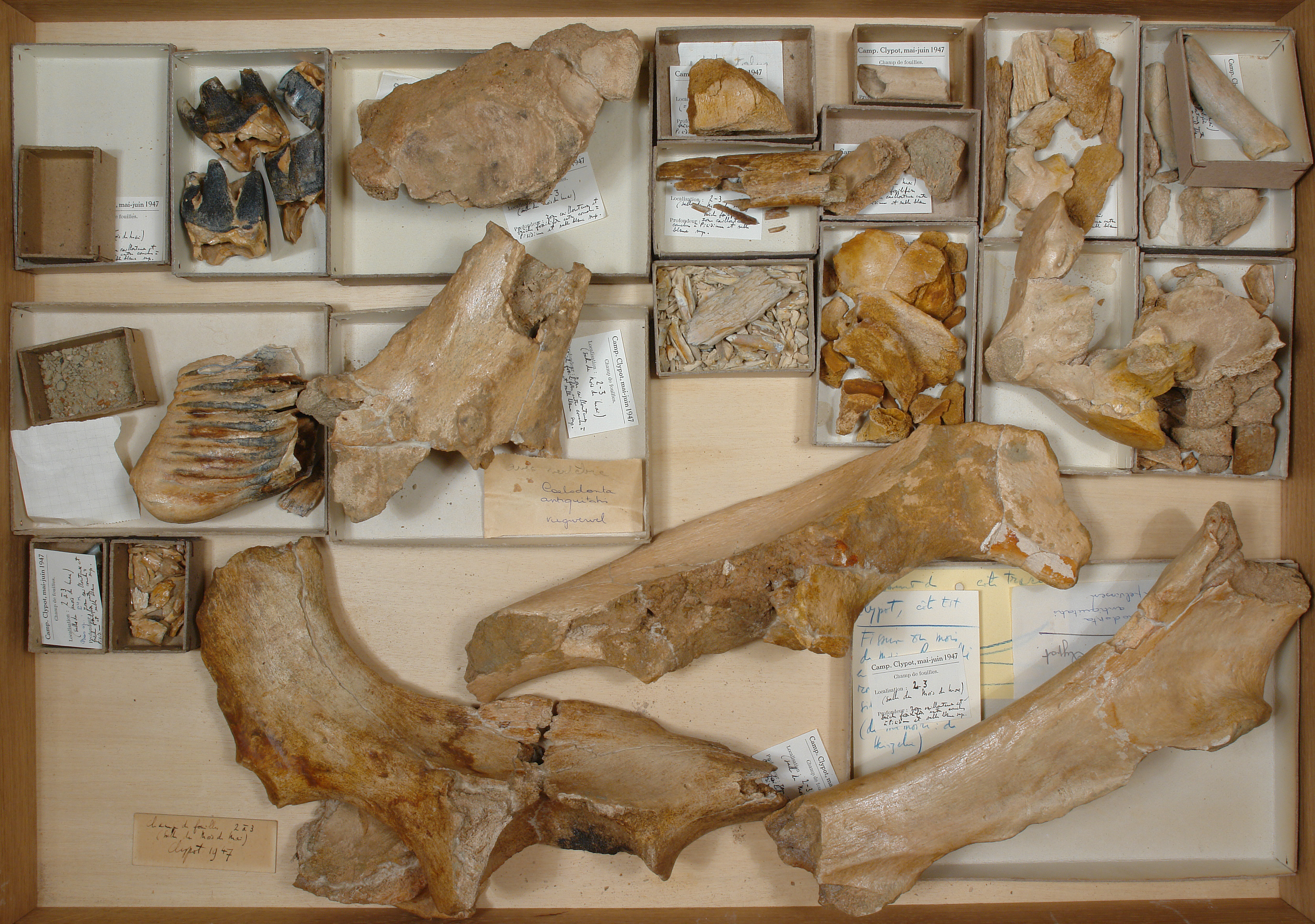 Champ de fouilles 2 à 3 - ossements + dents: 1 plateau.
