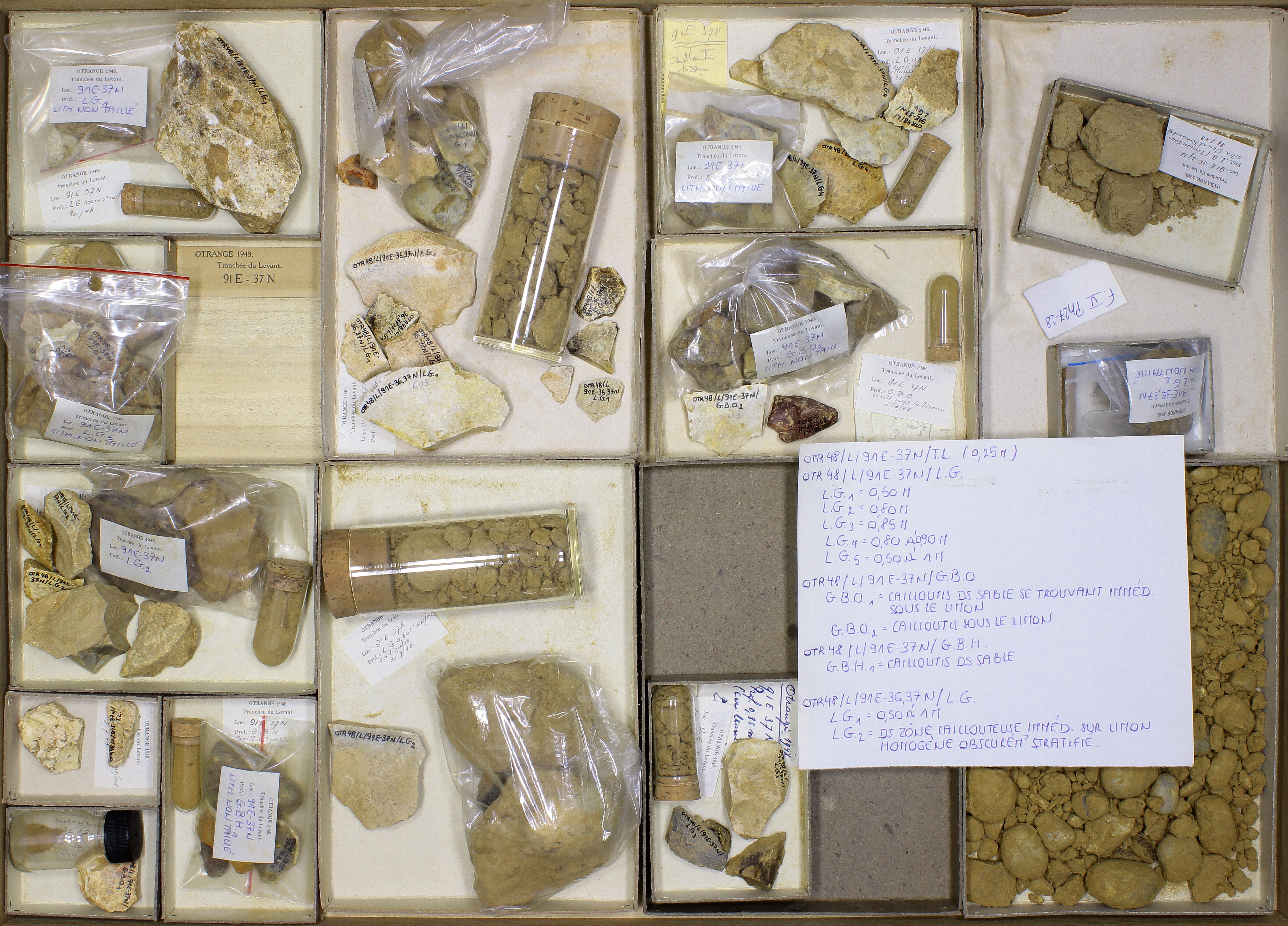 Tranchée du Couchant 7E - 24 à 27N - échantillons lithologiques: 17 cuvettes, - enveloppe avec photos: 1 pce.