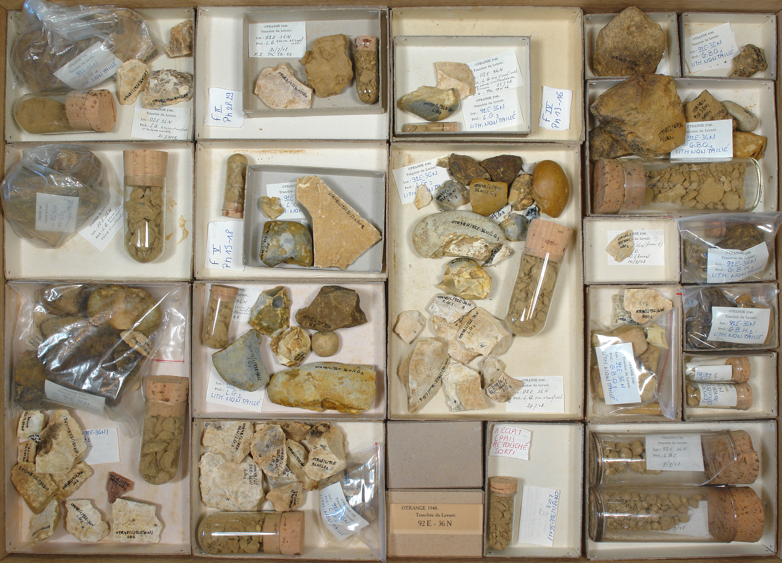 Tranchée du Levant 92E - 36N - échantillons lithologiques: 9 cuvettes.