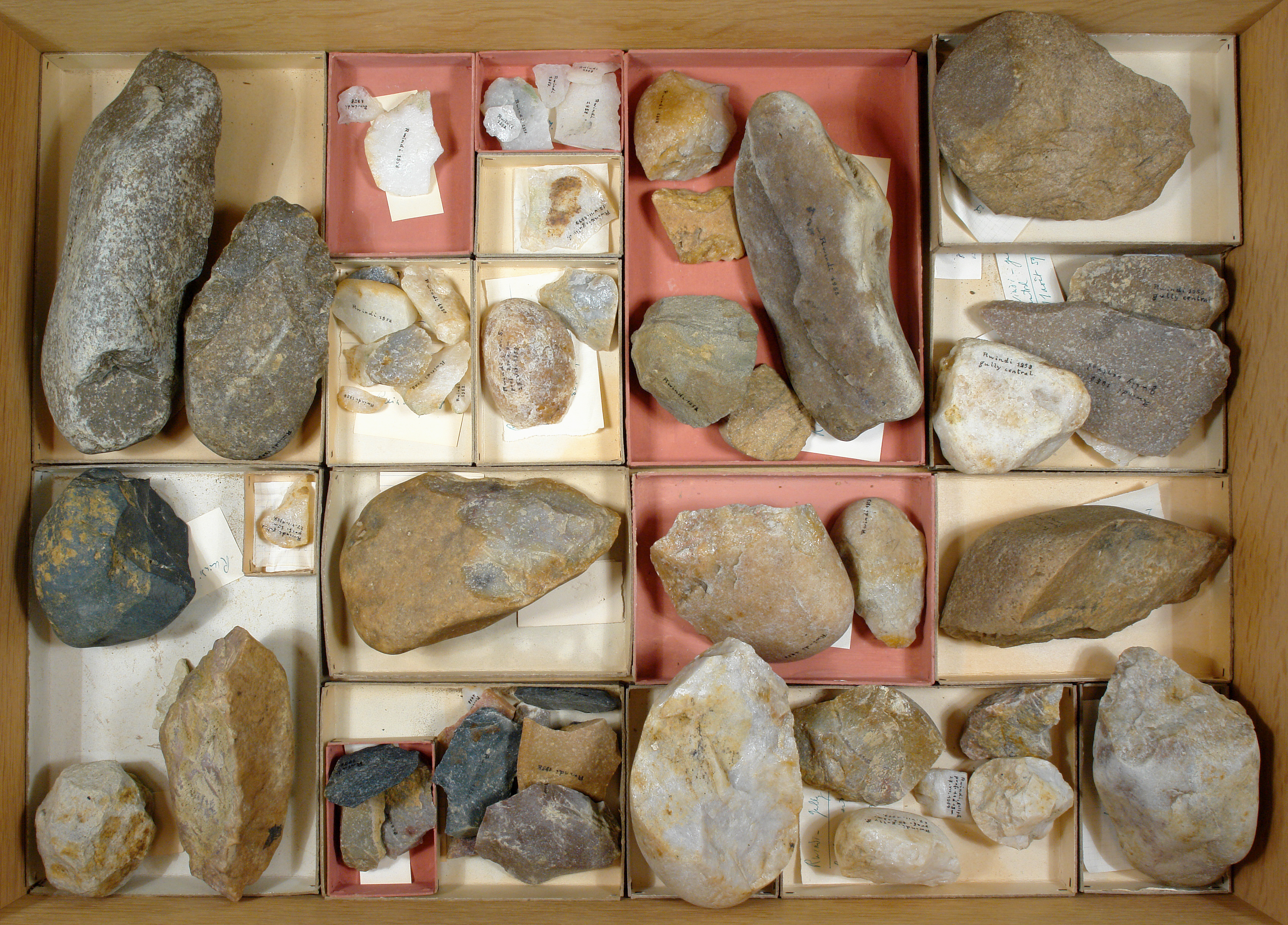 Mission de Heinzelin 1958 - échantillons lithologiques: 19 cuvettes.