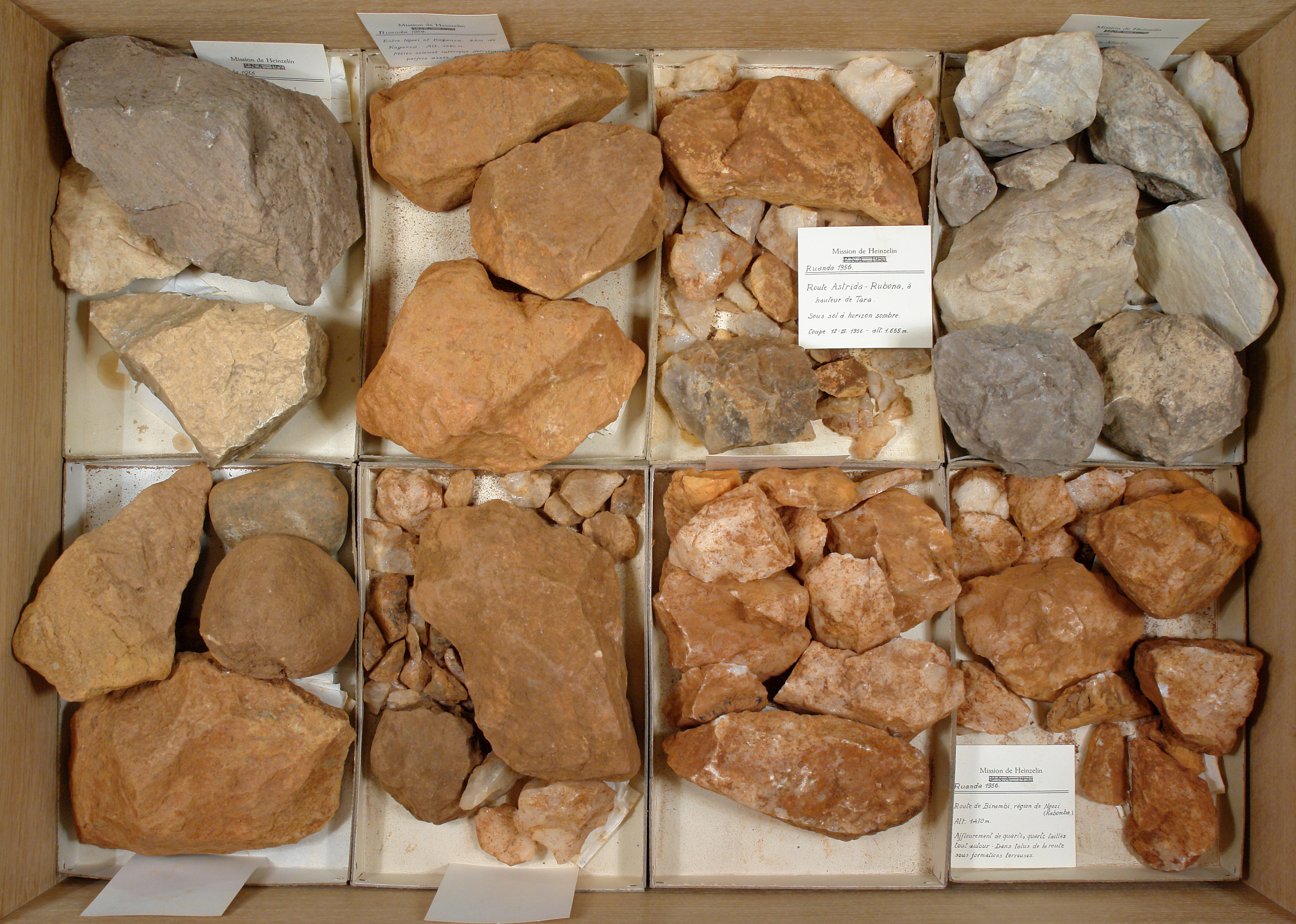 Mission de Heinzelin 1956 - échantillons lithologiques: 8 cuvettes.