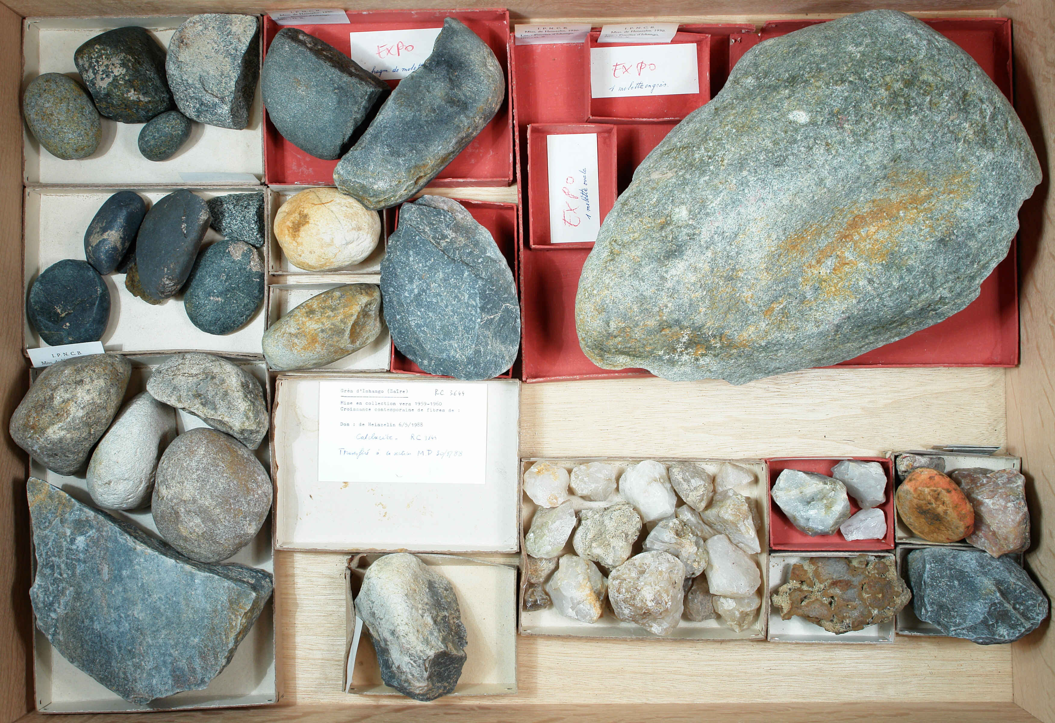 Mission de Heinzelin 1950 Industrie lithique: 1 plateau. Galets/Molettes Differents types de roches