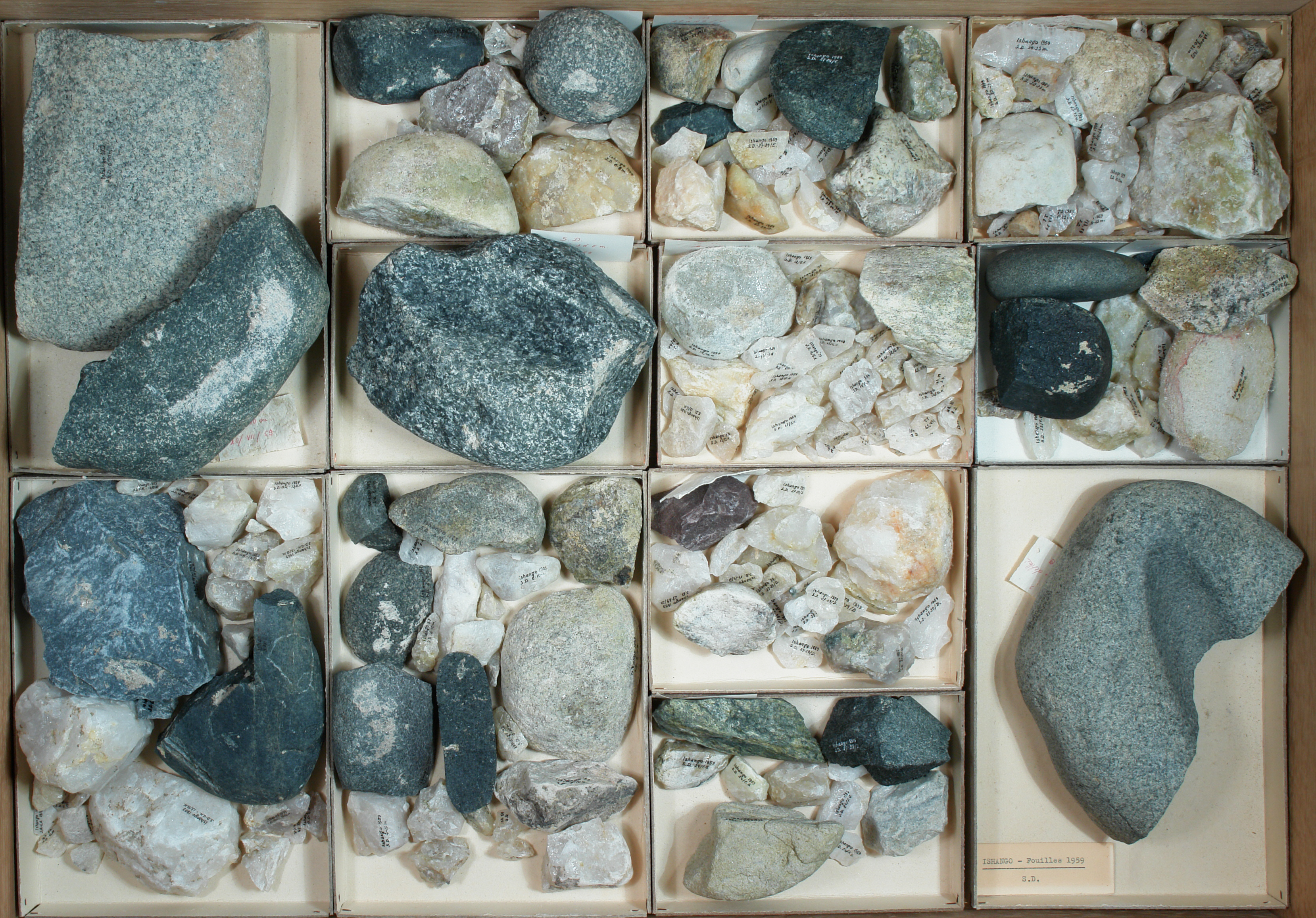 S.D. - industrie lithique et osseuse: 11 cuvettes. Industrie lithique
