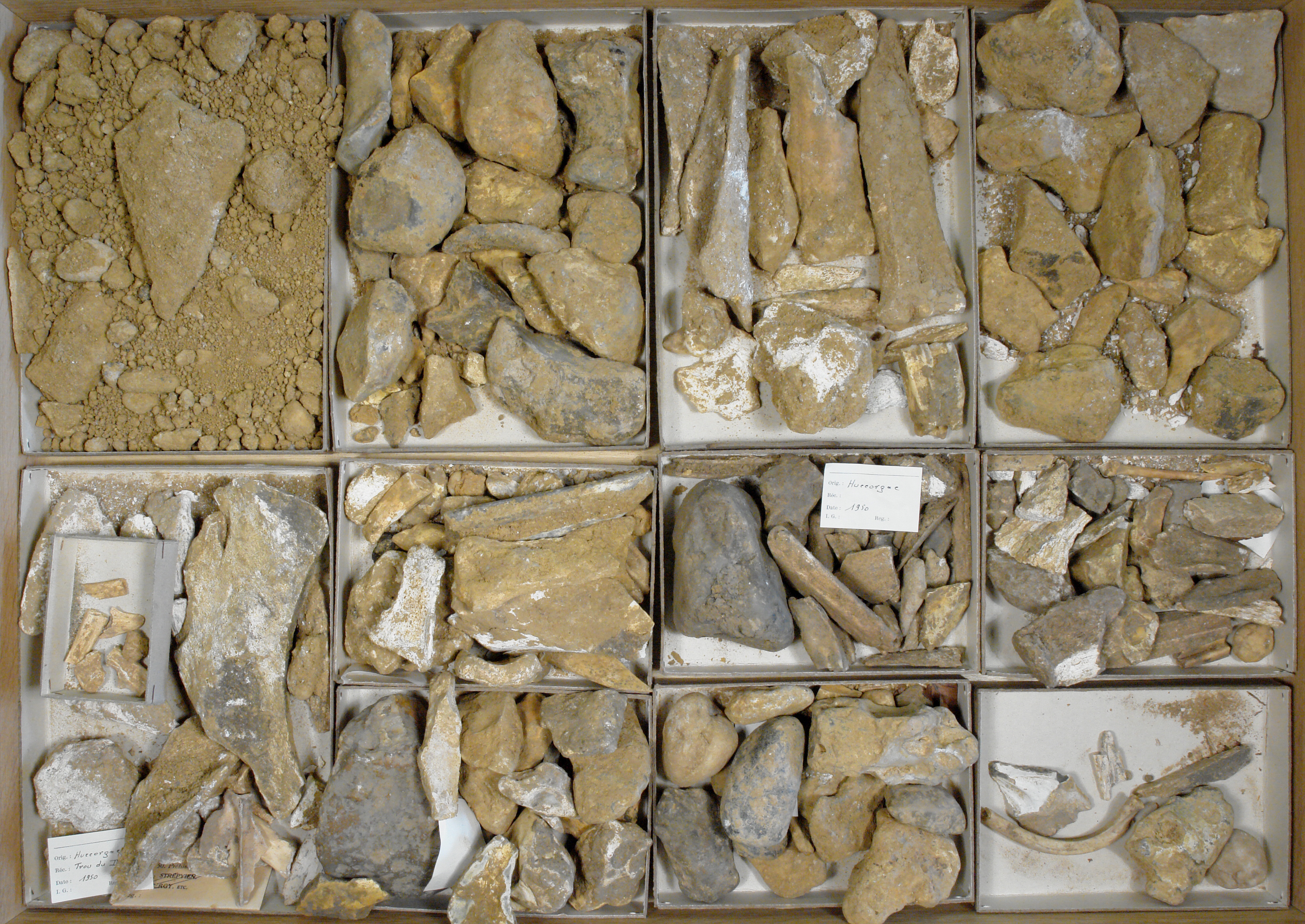 Huccorgne - échantillons litho. et divers: 12 cuvettes.