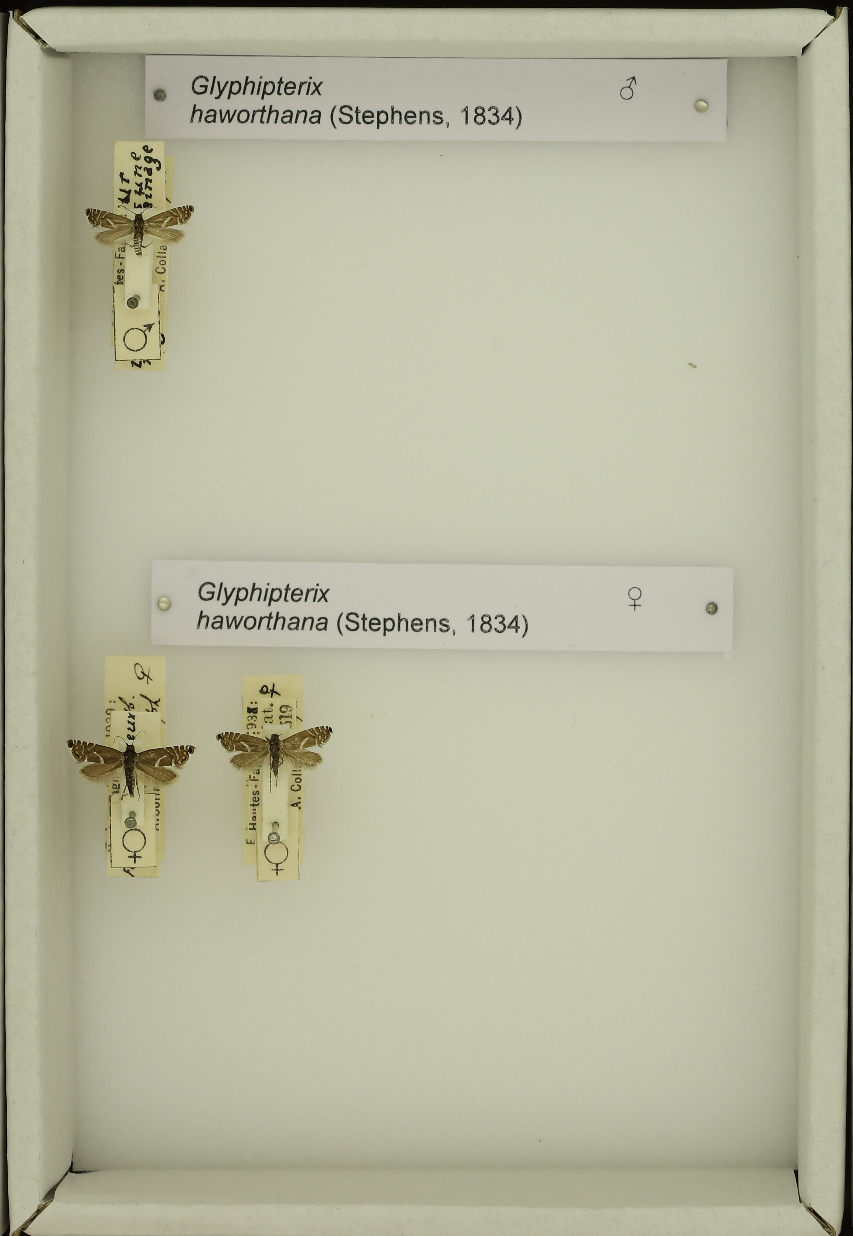 - Glyphipterix haworthana (Stephens, 1834) male & female