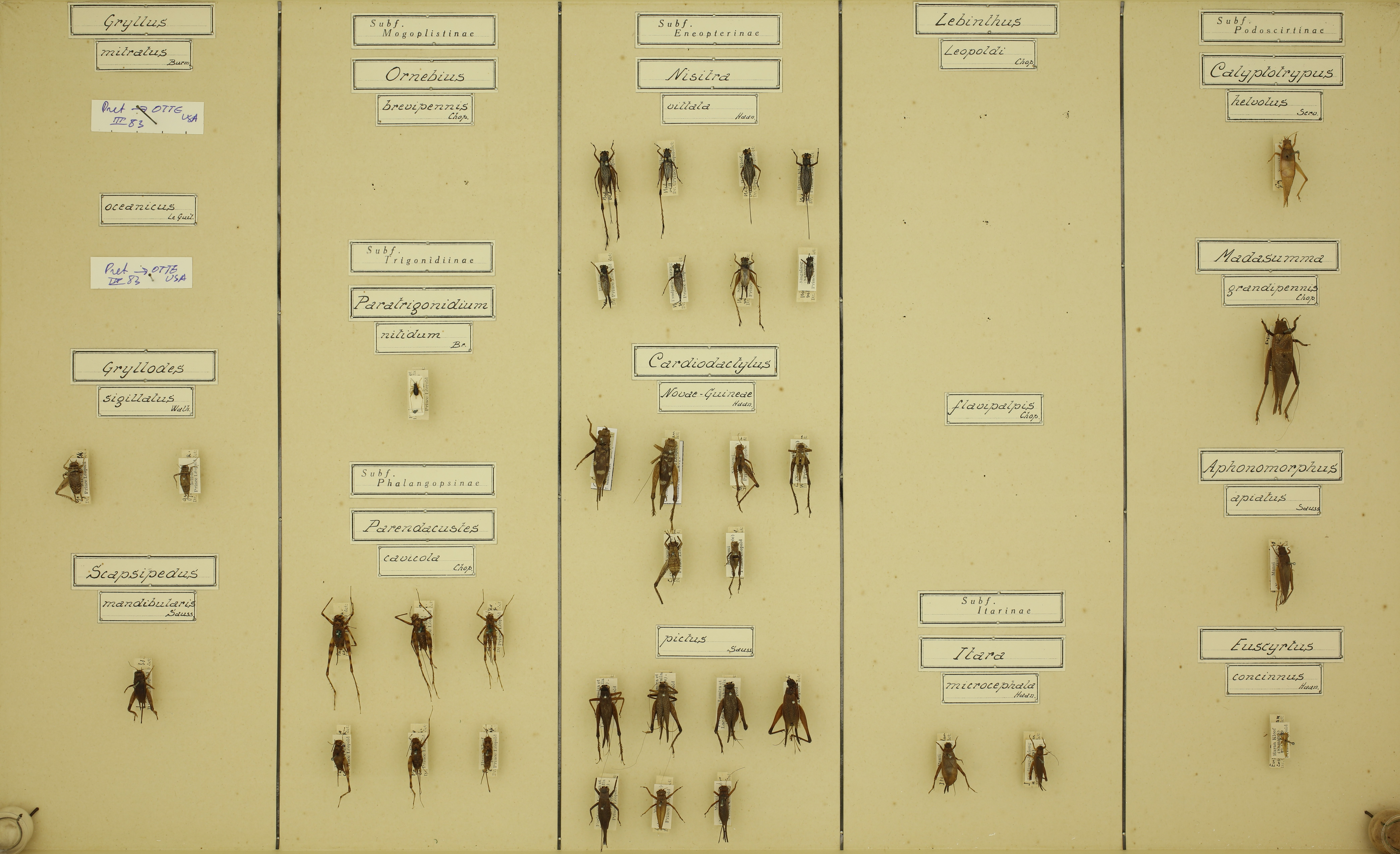 | Cardiodactylus novaeguineae (Haan, 1844) | Orthoptera | Gryllidae | Eneopterinae | New Guinea (Arfak) : Sakoemi | 6 |