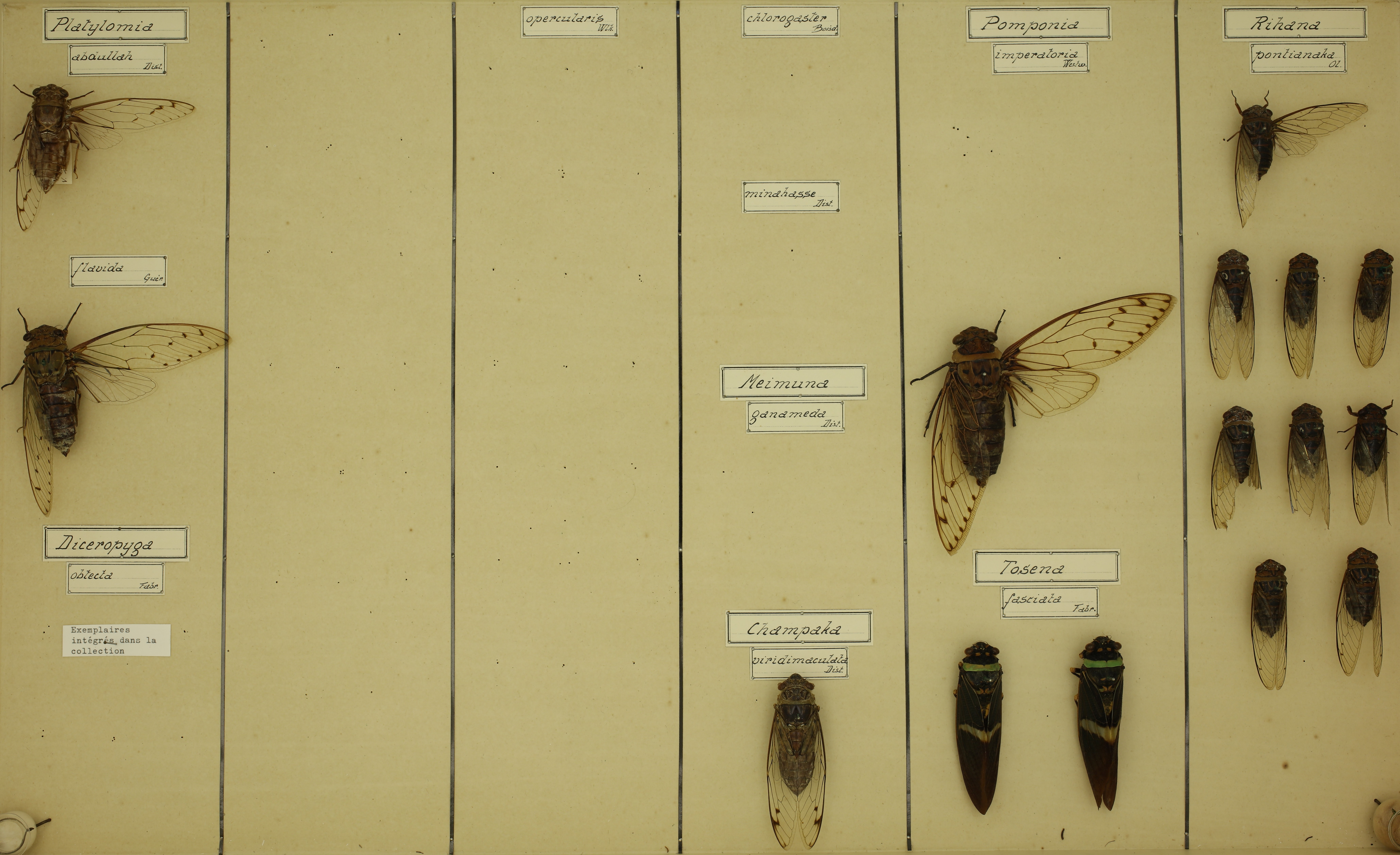 | Platylomia abdullah Dist. | Hemiptera | Cicacidae | Cicacinae | Lebrun (Sumatra) | 1 |