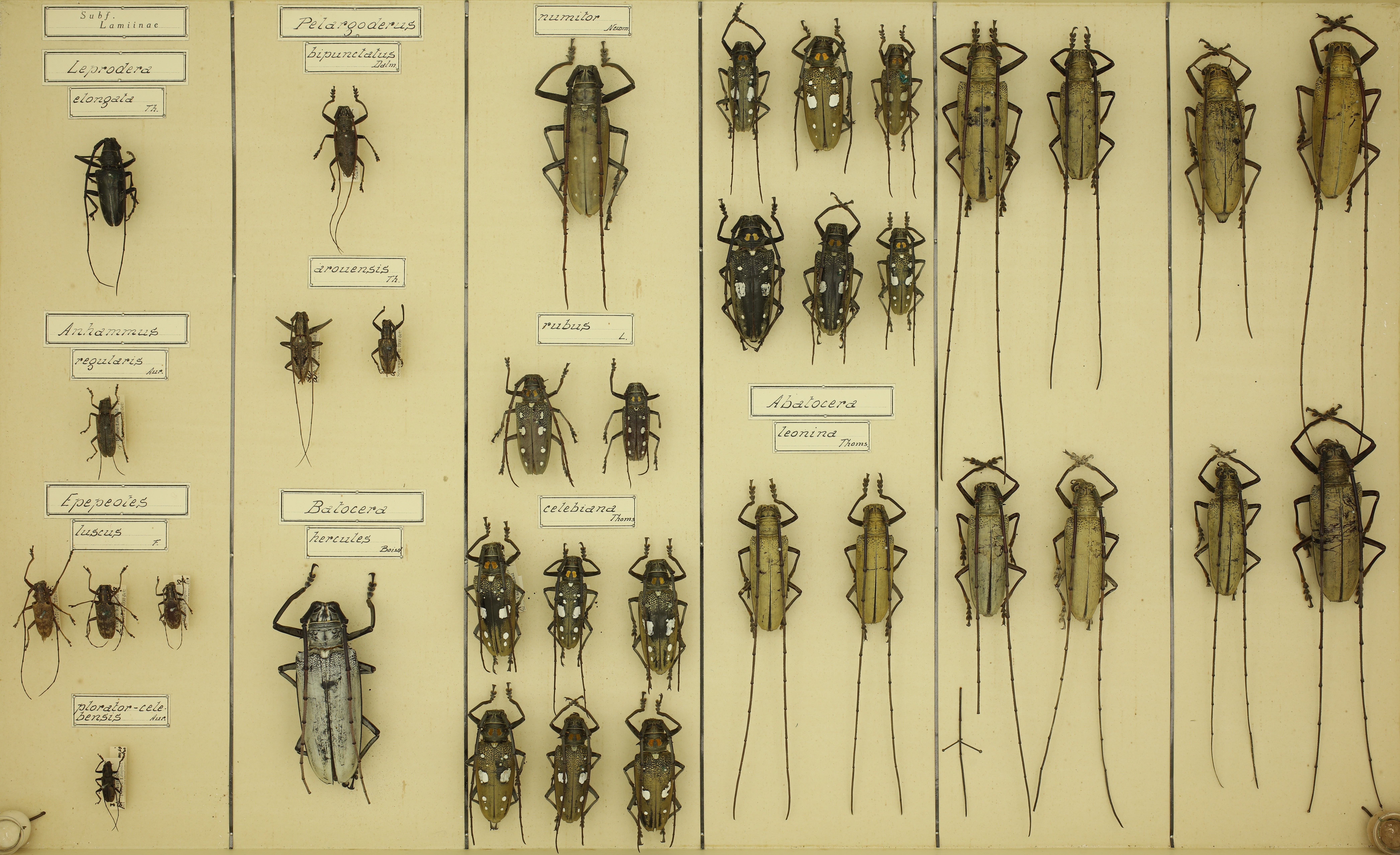 | Batocera numilor Newm | Coleoptera | Cerambycidae | Lamiinae | Tondano-Menado (Gelebes) | 1 |
