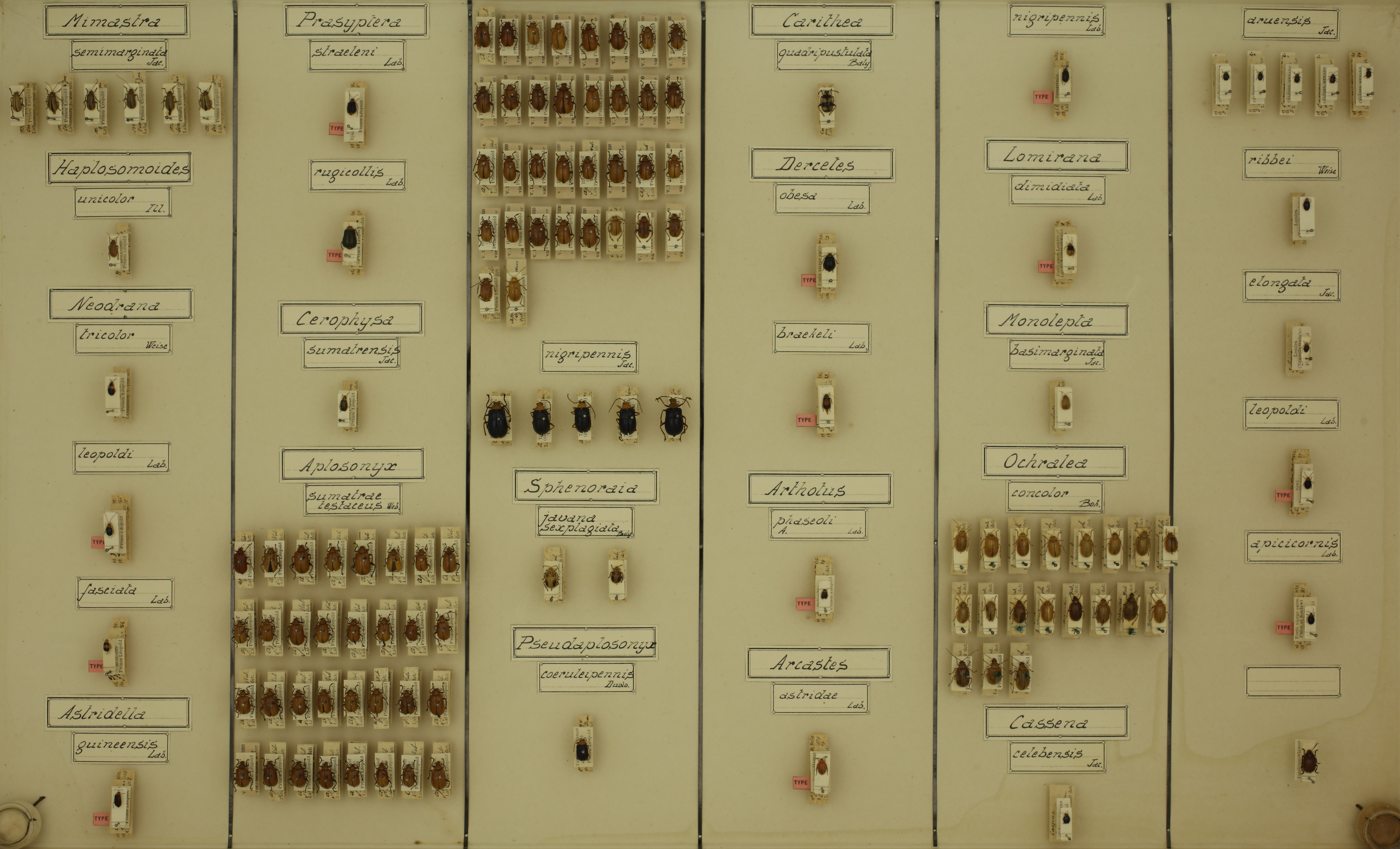 | Cassena leopoldi Lab. | Coleoptera | Chrysomelidae | Galerucinae | New Guinea: Siwi | 1 Type | Type |
