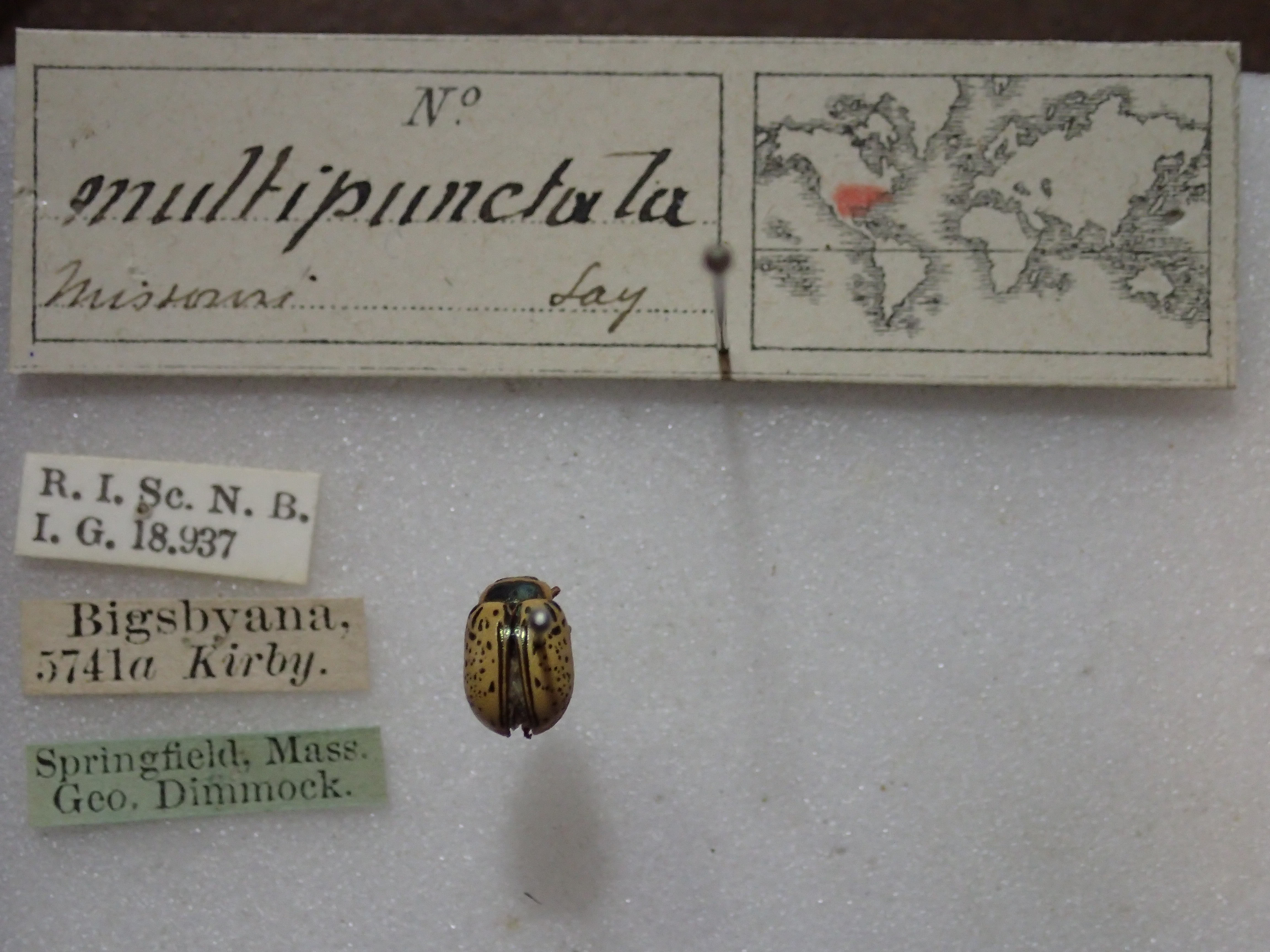 Current ID Merckx et al 2018: Calligrapha multipunctata bigsbyana Kirby, 1837 ; Original ID RBINS: Calligrapha multipunctata Say, 1824 ; Please create this specimen in DarWIN