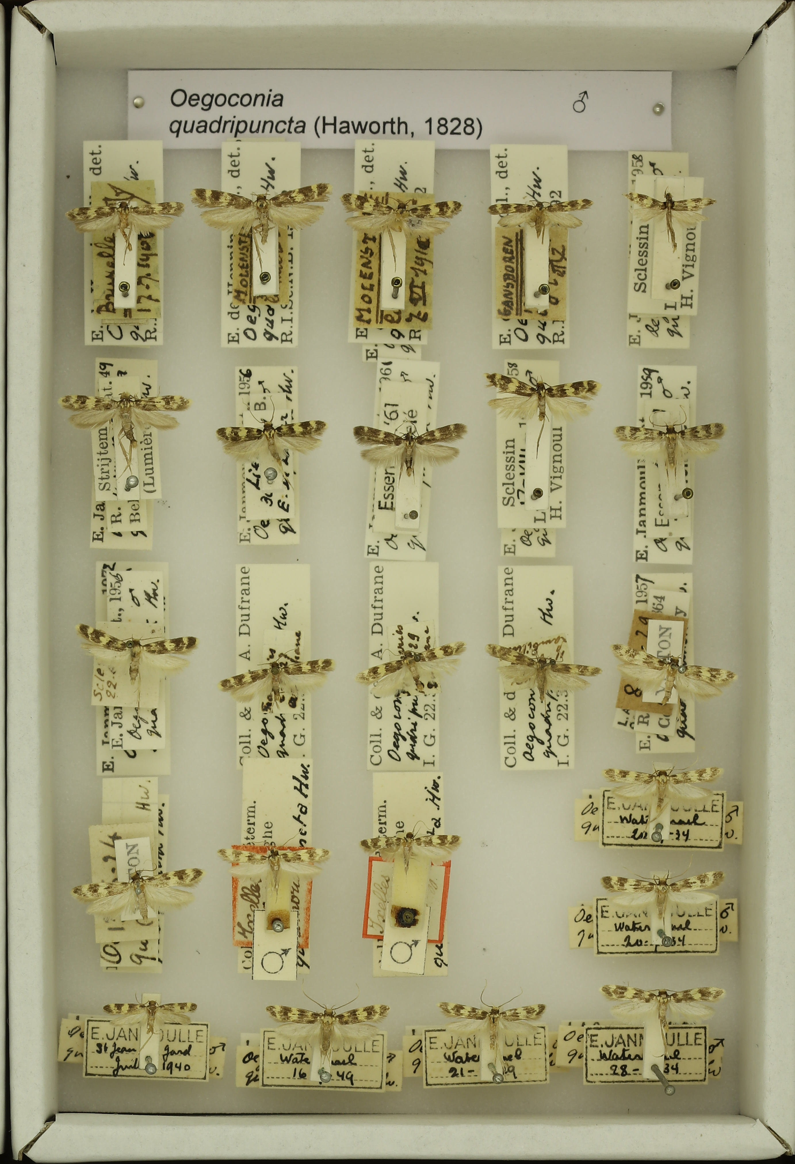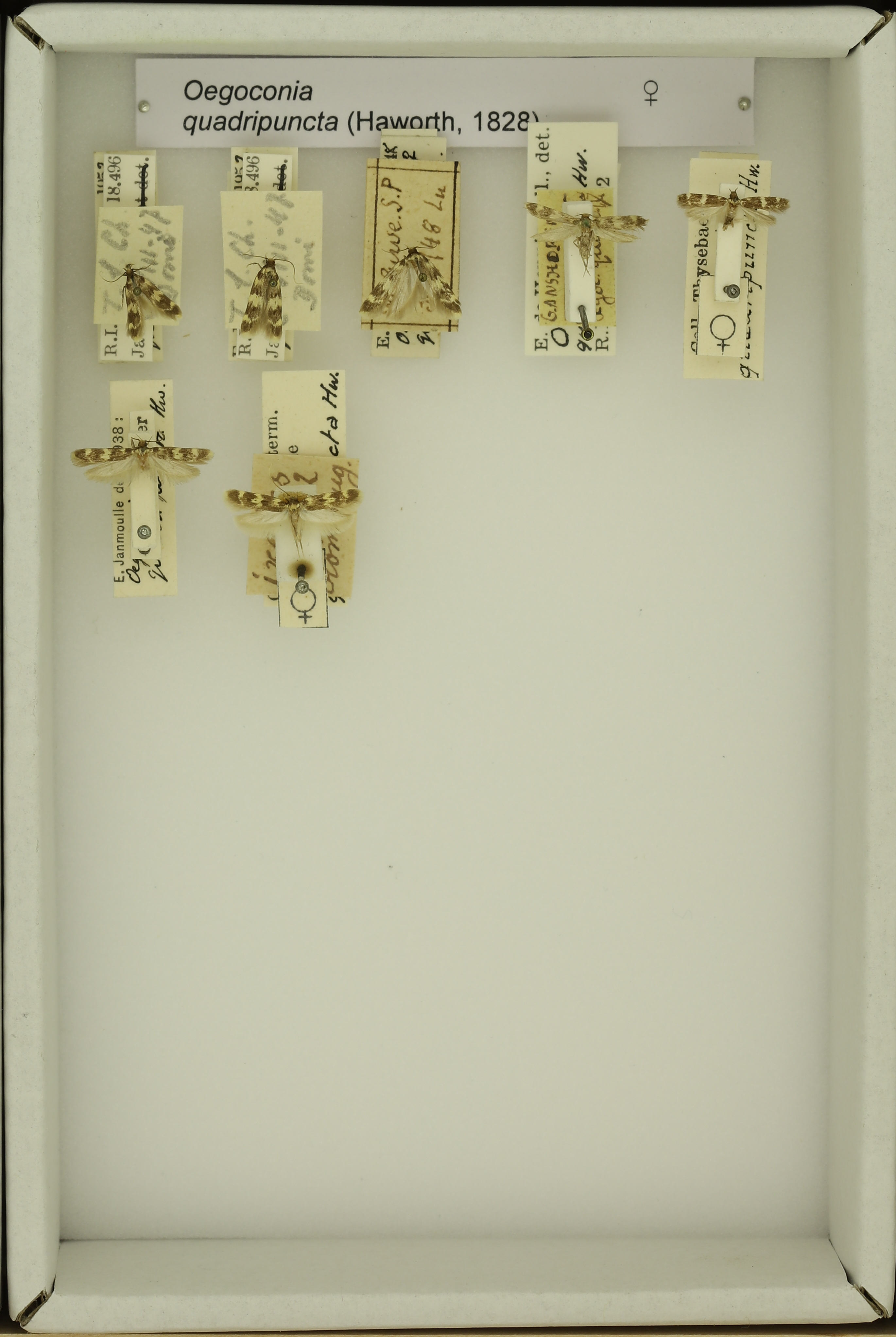Oegoconia quadripuncta (Haworth, 1828) male & female