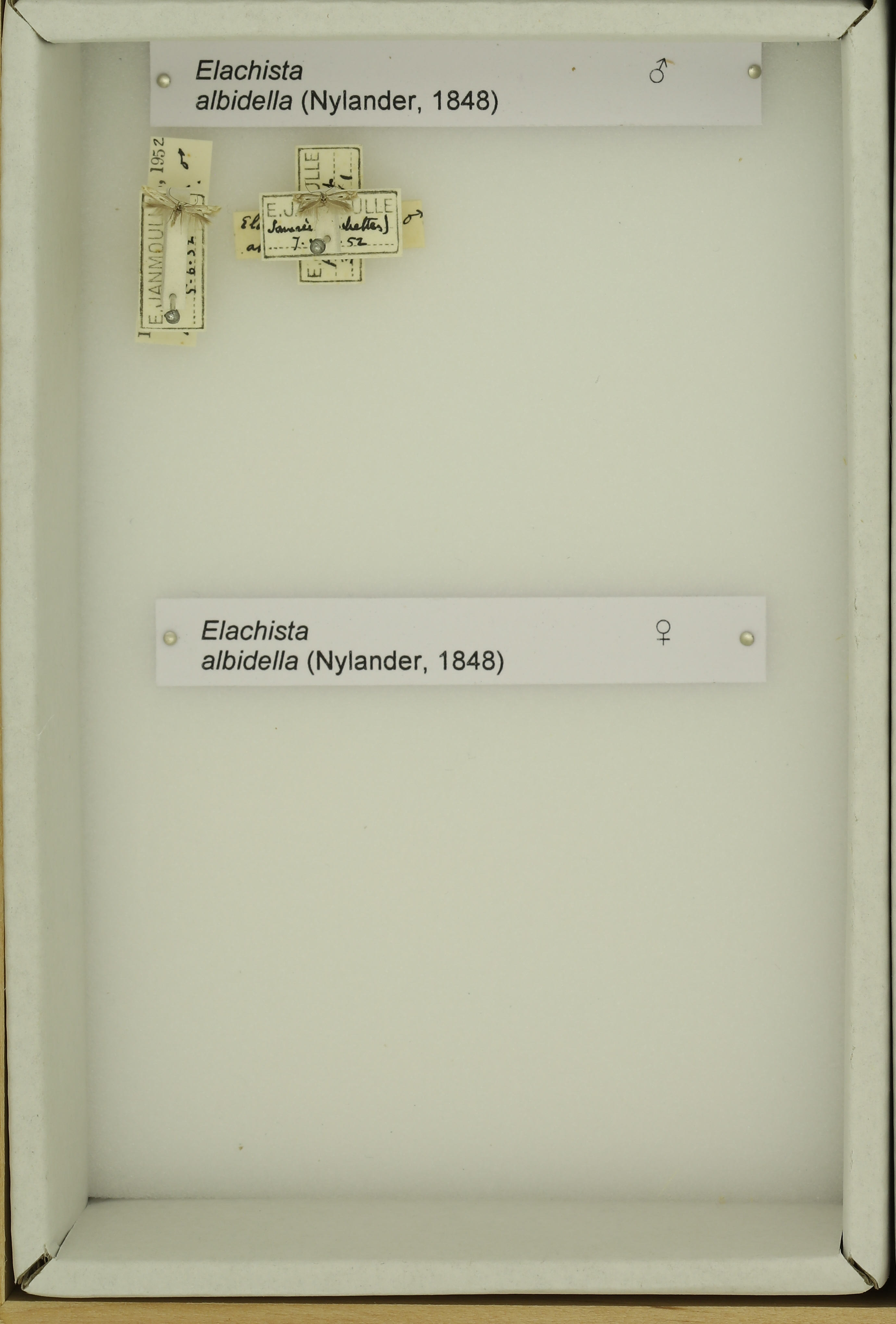 Elachista albifrontella (Hübner, 1817) male & female
