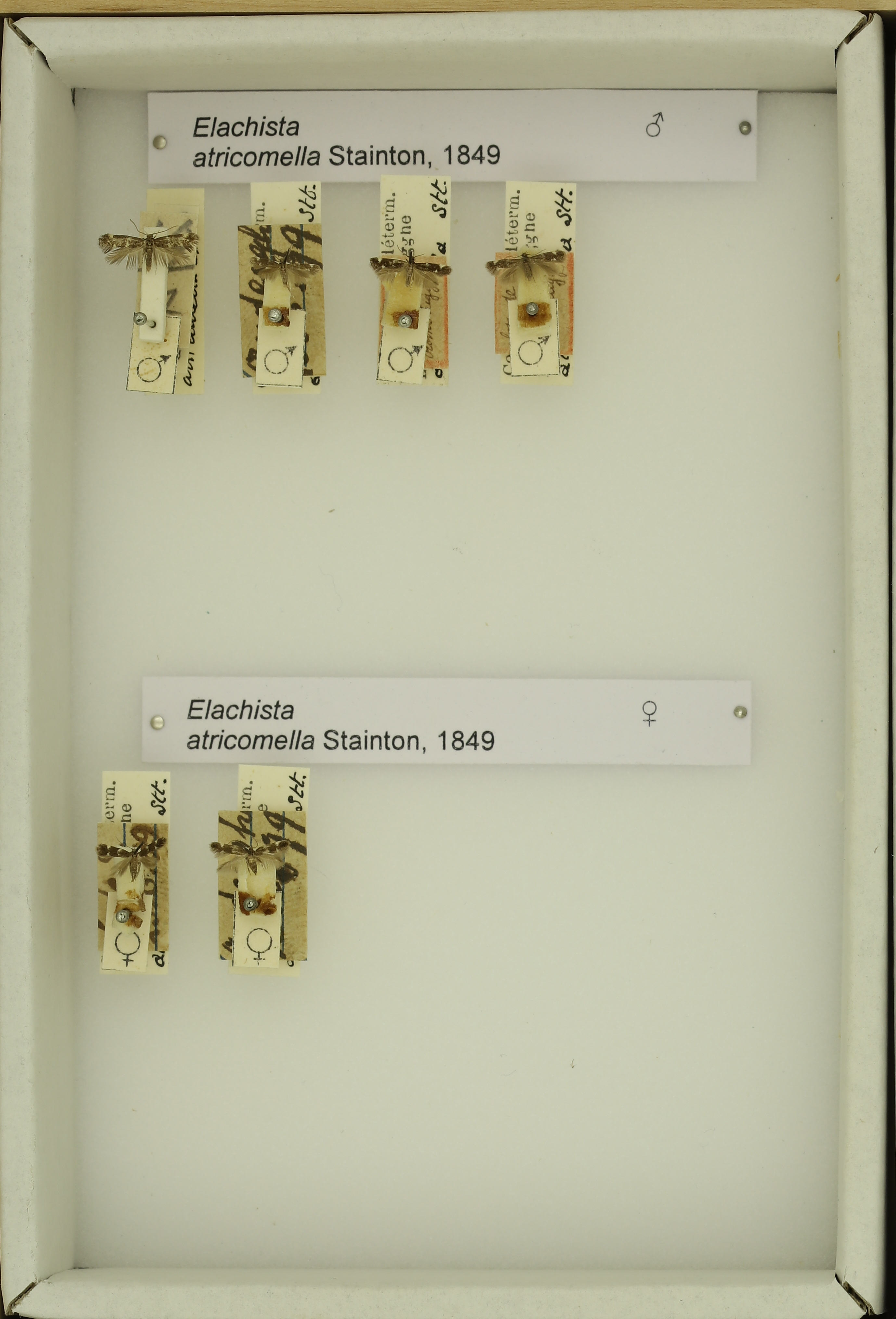 Elachista atricomella Stainton, 1849 male & female