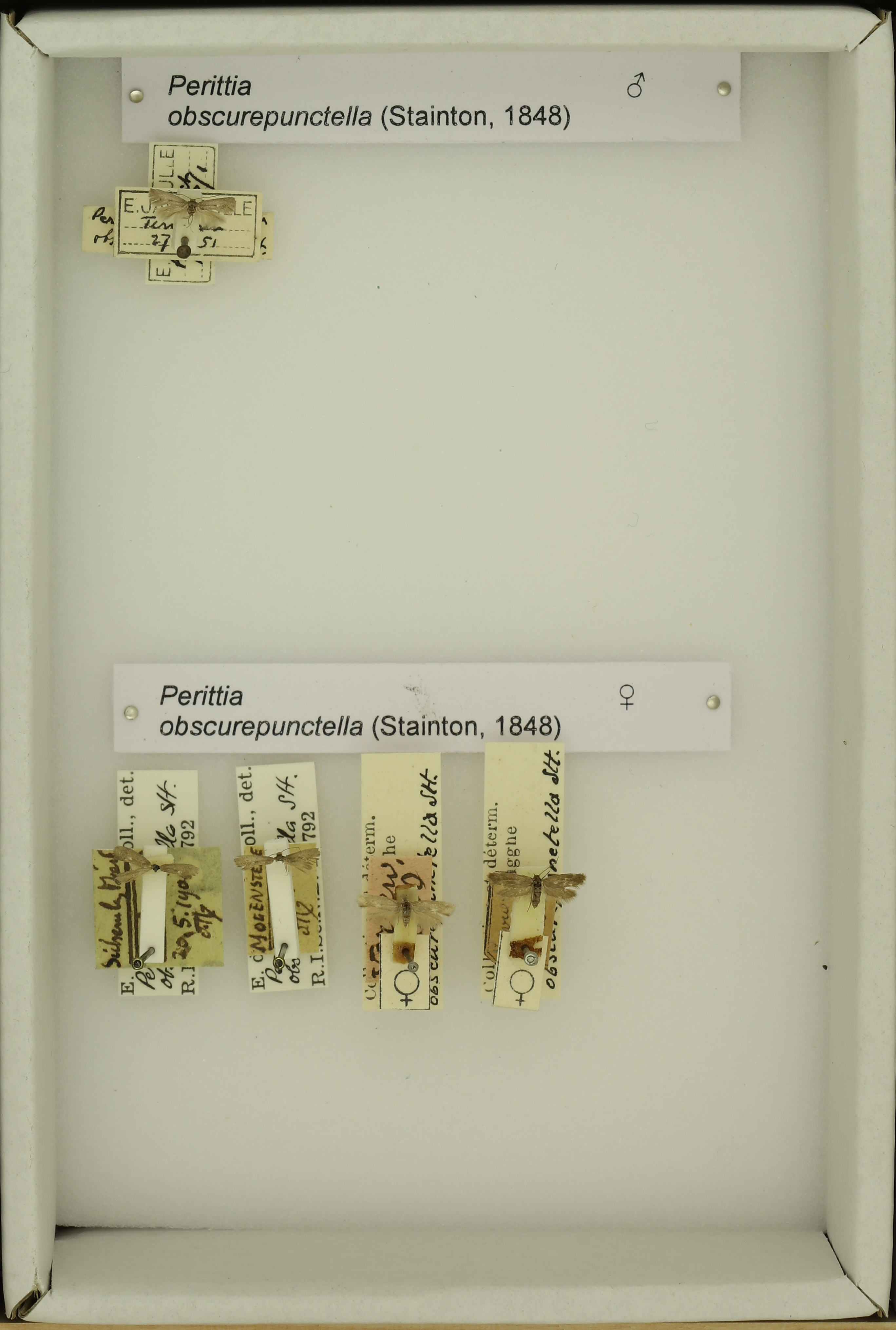 - Perittia obscurepunctella (Stainton, 1848) male & female