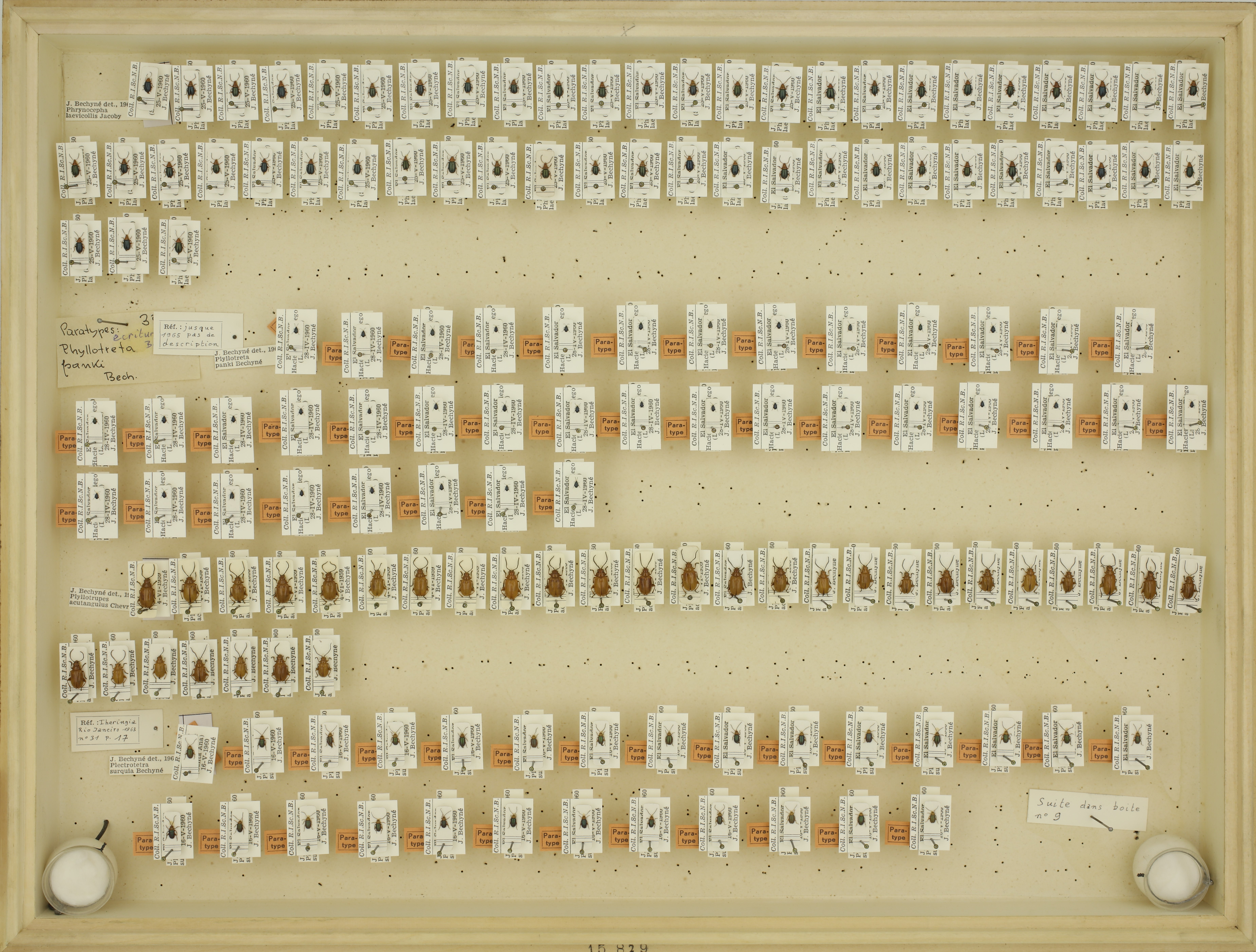 | 39 | K39_D08_066 | Halictinae col Bechyné BOX 8 | Phyllotreta panki Bechyné nomen nudum | 1 | El Salvador | Hacienda San Diego (La Libertad) | 28-4-1960 | J. Bechyné | J. Bechyné | Paratype | 28/IV/1960 | ||||