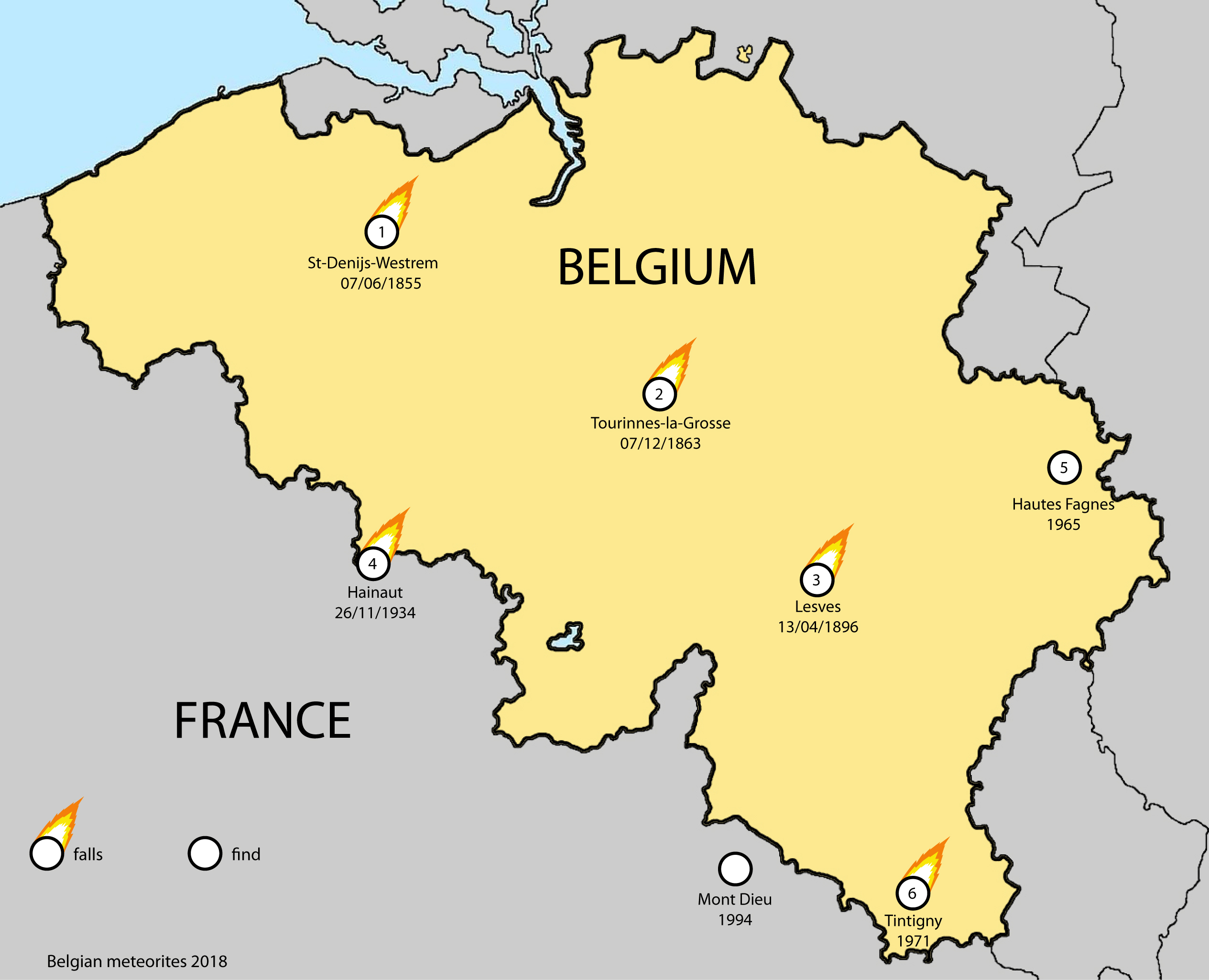 fall find meteorites be map