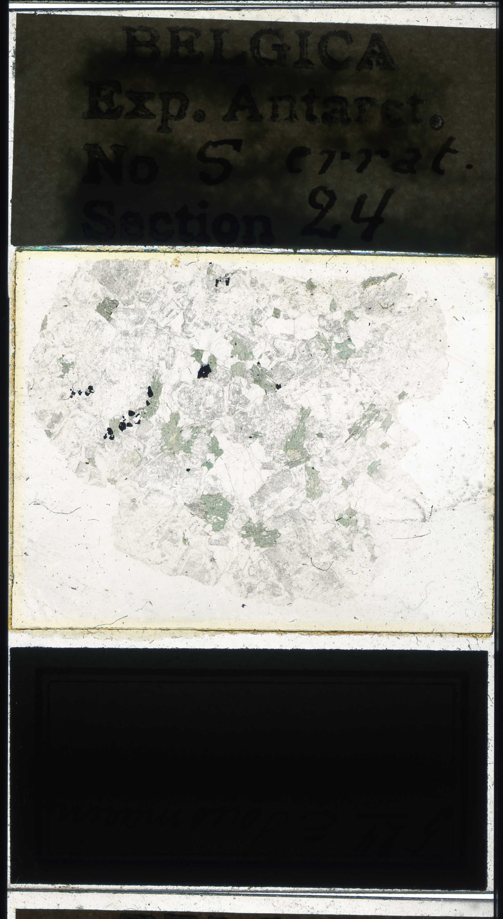 You are here: Home / Thin sections / Petrography / IG25804 expeditie Belgica Antarctica 1897-1899 slijpplaatjes / belgica antarctica expeditie 5.24a.jpg