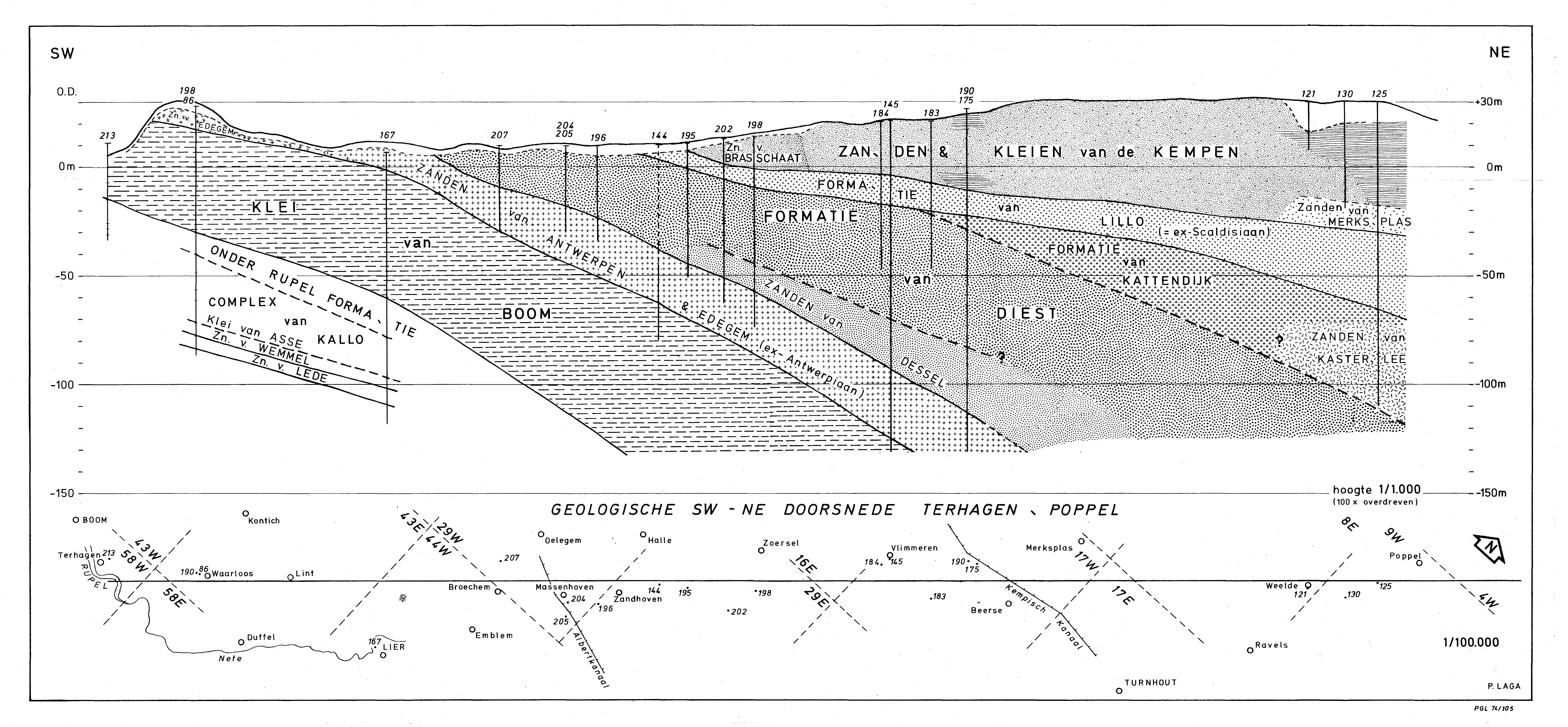 PGL 74-105 Geologische SW - NO doorsnede Terhagen - Poppel