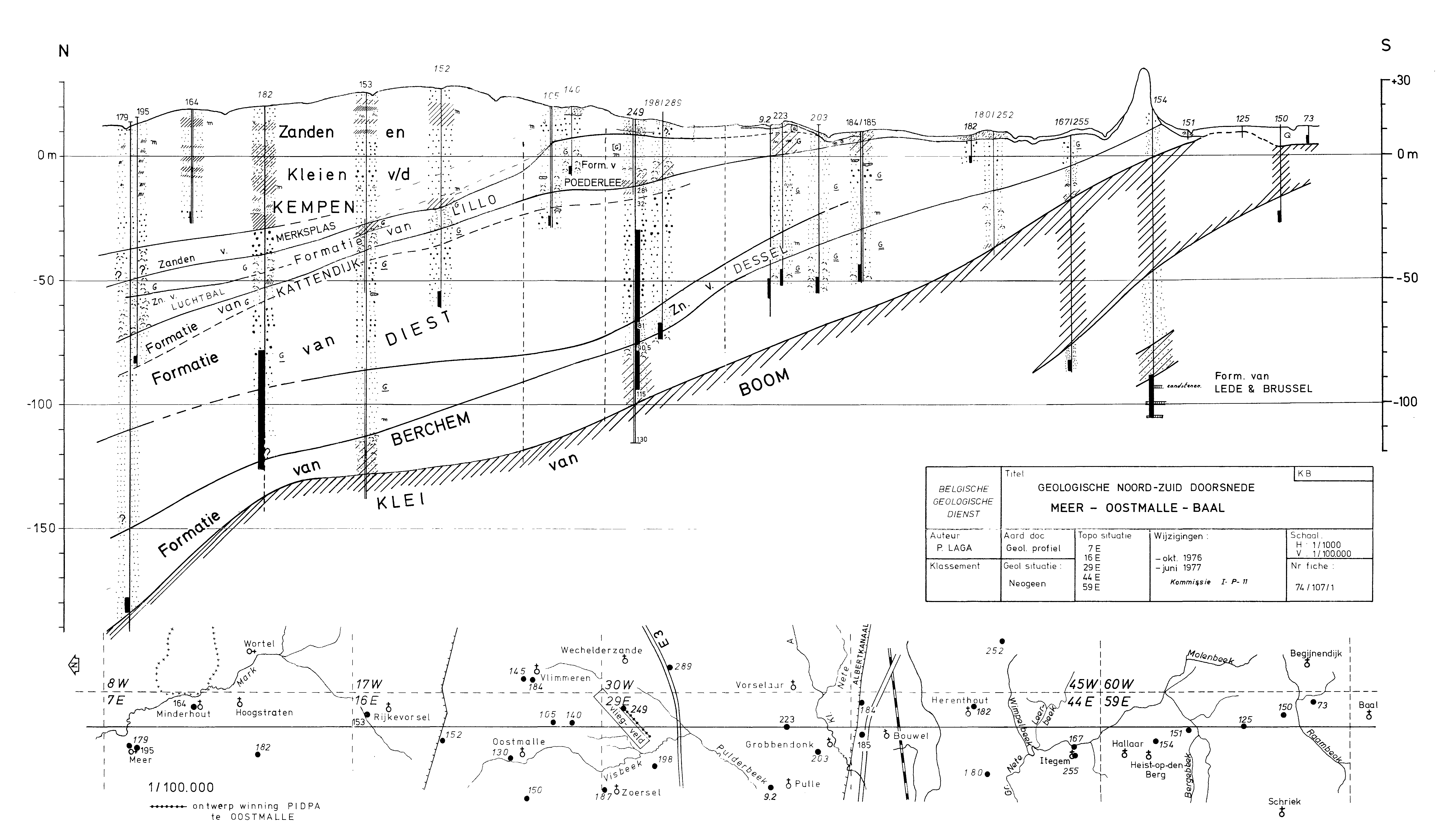 PGL 74-107 Geol NS doorsnede Meer-Oostmalle-Baal 007E-016E-029-044E-059E